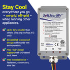 SoftStartRV minimizes inrush current, allowing your air conditioner to start smoothly without overloading your RV’s electrical system.